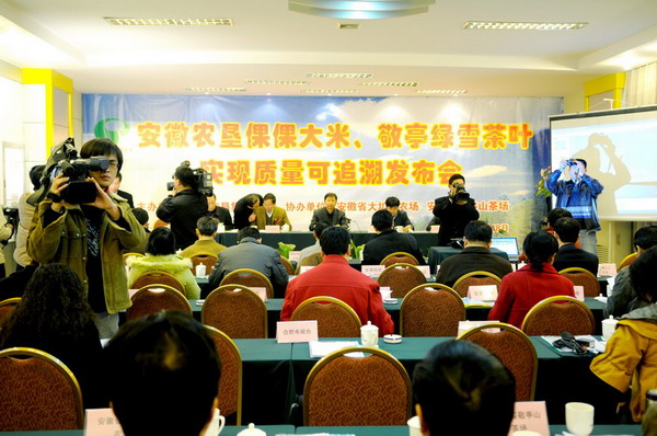 由省农垦集团公司主办、大圹圩农场和敬亭山茶场协办的 “‘倮倮’大米、‘敬亭绿雪’茶叶实现质量可追溯新闻发布会”12月18日下午在合肥星云商务酒店成功举行。