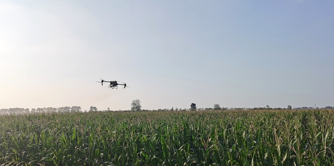当前,方邱湖农场公司夏播玉米全面进入灌浆鼓粒期,正值产量形成的关键时期,为强化种植管理,技术人员分片深入田间开展病虫害调查,及时开展玉米“一喷多促”田间作业。采取无人机统一喷施杀虫杀菌剂、氨基酸叶面肥、助剂等混合药剂,防治玉米病虫害,增强叶片光合作用功能,促进旱灾损伤恢复,促进籽粒灌浆稳定后期产量形成。