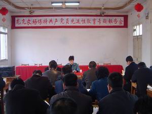 3月19日上午,龙亢农场党委举行第四场保持共产党 员先进性专题报告会,副场长刘梅作题为《保持共产 党员先进性,努力在实践中做好本职工作》的专题 报告,100名党员、干部参加会议。