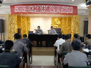 为了加强全省农垦水利基本建设管理,4月27-29日 集团公司农水处,邀请省水利厅、淮委的水利专家 教授对农垦系统农水基本管理的工作人员进行一次 集中培训,全系统各农场农水建设管理部门的负责 同志和技术人员参加培训。图为培训授课会场。