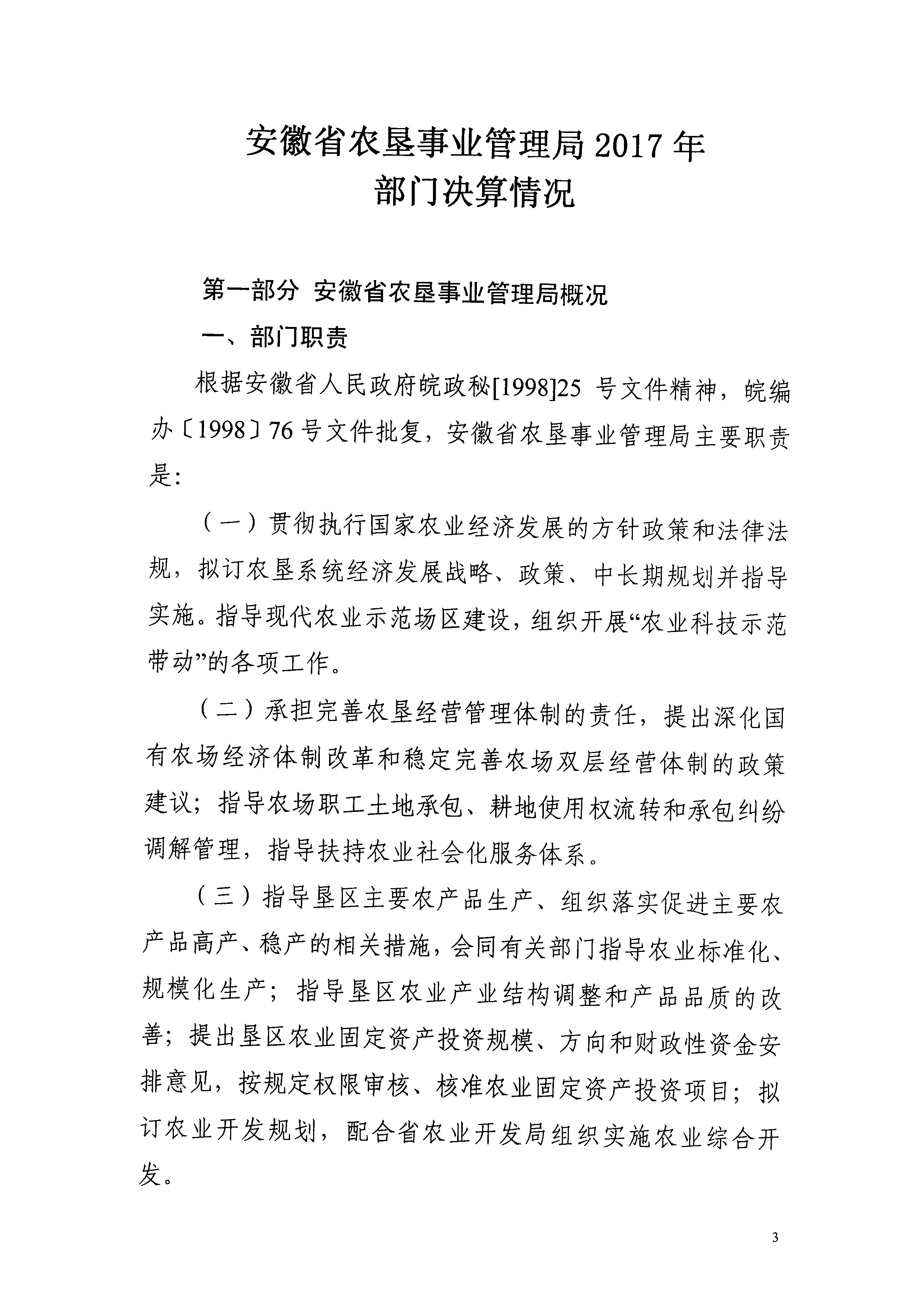 安徽省农垦事业管理局2017年部门决算情况